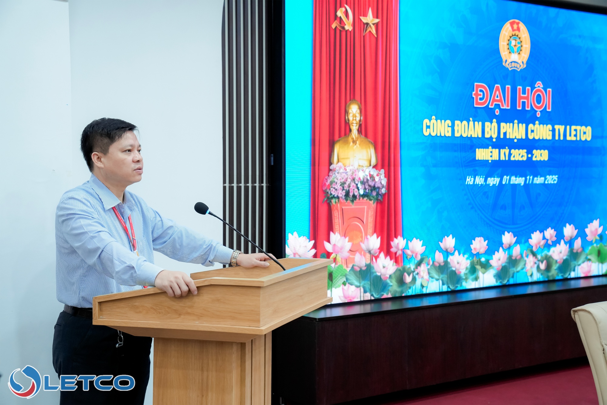 Phát biểu chỉ đạo tại Đại hội, PGS.TS Phạm Văn Đông – Phó Hiệu trưởng, Chủ tịch Công đoàn Trường ĐHCN Hà Nội đã ghi nhận và biểu dương những kết quả Công đoàn LETCO đạt được. PGS.TS Phạm Văn Đông đánh giá cao nỗ lực của Ban Chấp hành (BCH) trong việc duy trì sự ổn định, đảm bảo đời sống và bảo vệ quyền lợi chính đáng cho người lao động trong bối cảnh thị trường nhiều biến động.