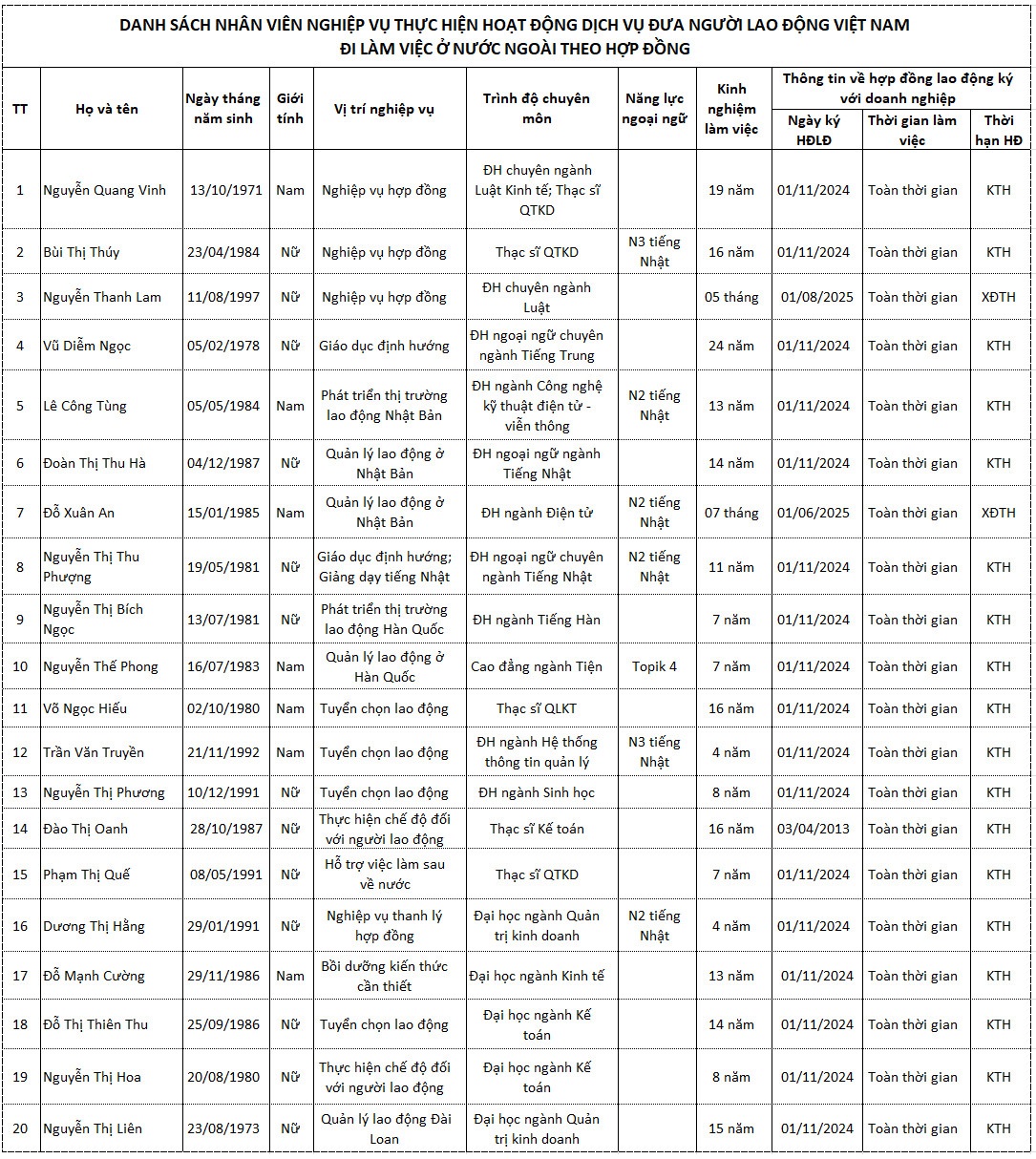 1. Giấy phép hoạt động: Dịch vụ đưa người Việt Nam đi làm việc ở nước ngoài theo hợp đồng