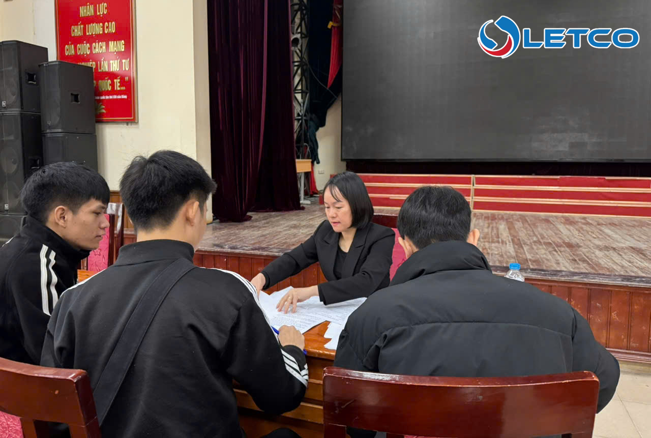 Tại buổi làm việc, đội ngũ cán bộ của LETCO đã trực tiếp hỗ trợ, rà soát hồ sơ, hướng dẫn chi tiết từng thủ tục cho người lao động. Mỗi Thực tập sinh/Lao động đặc định cùng người giám hộ được mời lên làm việc và ký hợp đồng, đảm bảo mọi nội dung đều được giải thích rõ ràng, minh bạch.